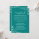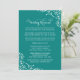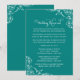 Traga uma energia fresca e vibrante para a noite do seu ensaio com este convite de jantar de ensaio de casamento turquesa. Os floreios de scrollwork branco adornam os cantos enquanto a caligrafia fluida destaca um charmoso poema rimado com todos os detalhes necessários para os convidados. O fundo turquesa ousado faz com que os elementos de design branco se destaquem lindamente. Cada detalhe é totalmente editável para se adequar perfeitamente ao seu evento.