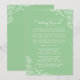 Adicione um toque fresco e inspirado no jardim à noite do seu ensaio com este convite de jantar de ensaio de casamento em verde menta. Os floreios de arabescos brancos acentuam os cantos, enquanto a caligrafia elegante apresenta um poema rimado encantador com todos os detalhes para a prática da cerimônia e jantar. O fundo verde suave cria uma sensação leve e convidativa. Personalize todos os elementos, incluindo texto, cores e fontes, para se adequar à sua celebração.