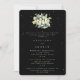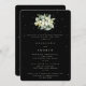 Um convite para janto de ensaio de casamento negro, para quando o ensaio e o janto estiverem em dois locais separados. Apresentando um buquê/poste de groselhas de neve pintadas manualmente e eucalipto. Todo texto é totalmente editável e os pontos dispersos na frente e atrás podem ser excluídos antes de fazer o pedido, se preferir. Por favor, veja esta Coleção na minha loja para ver os arranjos florais do alternativo, cores diferentes e para coordenar itens.