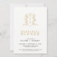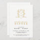 Convite de ensaio de casamento com brasão de coração desenhado à mão em branco e dourado com folhas entrelaçadas e frutos em fundo branco. Em dourado clássico sobre branco. Outras cores e itens correspondentes estão disponíveis. © Desenho e design original à mão por Sarah Trett para www.mylittleedenweddings.com na Zazzle.