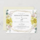 WEDDING REHEARSAL DINNER | Peões de aquarela amarela com magnólias em marfim escamoso e baunilha - uma estrutura de tipo terrário geométrico dourado e multifacetada adornada com buquês verdes e florais. O reverso é uma cor complementar coordenada. Personalizar texto, estilo de fonte, cor e tamanho. Arte original criada para o BarefootBride™ por © WhimsicalArtwork™ - Esta é parte de um Conjunto completo de Artes de Casamento, chá de fraldas e outros artigos de papelaria para eventos semelhantes.