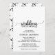 Este simples cartão de convite para o ensaio de caligrafia negra é perfeito para um casamento rústico. A design minimalista apresenta uma elegante letra de escrita de pincel e um adorável coração feminino. O suporte apresenta um padrão clássico de folhas e ramos.
