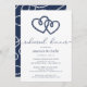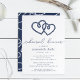 Nossos elegantes convites para janto de ensaio de verão apresentam estilo náutico clássico em azul marinho e branco, com um par de cordas entrelaçadas corações nó no topo. Personalize com seu ensaio de cerimônia e jante detalhes abaixo em uma combinação chic de serif e sans serif lettering. Perfeito para jantadas náuticas, de tema de praia ou de ensaio de Verão.