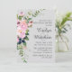 Este convite de janto para ensaio romântico apresenta rosas rosa-pinceladas acentuadas com folhas de oliveira e ramos aqua. O texto da cinza complementa as cores suaves do buquê. Os nomes da noiva e do noivo são carinhosamente representados em cima de um grande painel, juntamente com os detalhes da data, hora e local do janto de ensaio. Todos os detalhes, incluindo a cor do texto, são completamente personalizáveis.