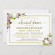 Este maravilhoso convite para janto de ensaio de casamento apresenta um design elegante com uma fronteira dourada, caligrafia de guiões e buquês de flores de primavera, incluindo rosebudas cor-de-rosa e lírios brancos. Há momentos e locais para o ensaio e para o janto, por isso o seu partido noivo terá toda a informação de que necessita. O dorso é impresso em lindo dourado marmoreado ou texturizado, dando ao convidado um ar de sofisticação, e fornecendo um bom contraste ao design floral pastel na frente.