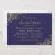 Este belo convite para jantas de ensaio é simples e elegante. Apresenta texto dourado sobre fundo azul-marinho com folhas de alumínio folgadas ou filigranas de ouro nos cantos. Ele tem informações sobre o ensaio de casamento, assim como sobre o janto comemorativo que se segue. Perfeito por manter a noiva informada sobre todas as festividades pré-casamento.