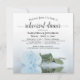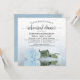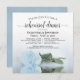 Este belo convite de janto de ensaio de casamento mostra uma foto de um solteiro longo, azul-poeirento leve e poeirento, rosa de cor azul, deitado em seu lado, refletindo em uma piscina de água com ondas e ondulações. O título elegante da caligrafia de script empresta classe e estilo. Inclui informações sobre o ensaio e o janto. Maneira perfeita de manter a festa de casamento informada enquanto os agradece por fazerem parte do seu dia especial.