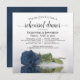 Este belo convite de janto de ensaio de casamento mostra uma foto de um rosa de aço, poeirento e empoeirado, de cor azul, deitado do lado dele refletindo em uma piscina de água com ondas e ondulações. O título elegante da caligrafia de script empresta classe e estilo. Inclui informações sobre o ensaio e o janto. Maneira perfeita de manter a festa de casamento informada enquanto os agradece por fazerem parte do seu dia especial.