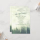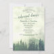 Este belo convite de janto de ensaio de casamento apresenta uma pintura aquosa de pinheiros verdes de montanha envoltos em neblina ou neblina. O design é rústico, mas elegante, com título de caligrafia e espaço para informações sobre o ensaio e o janto a seguir. Perfeito para um casamento em um lugar ao ar livre ou selvagem.