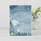 Montanhas aquáticas dos Partidos Tema Montanhas Rústicas de Ensaio janto de Concurso de Casamento design em tema escuro mostra árvores aquáticas e montanhas em um fundo de aquarela azul empoeirado. A tipografia emparelha as letras tradicionais com o texto moderno escrito à mão. #WeddingConvites #DustyBlueWedding #WeddingConvites