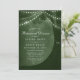 Convide seus entes queridos para o seu janto de ensaio com este charmoso convite. Apresentando uma silhueta rústica de árvore enfeitada com luzes de cordas cintilantes contra um pano de fundo verde vibrante, este convite define o tom para uma reunião quente e íntima. Perfeito para um ensaio ao ar livre ou à noite, esta design certamente vai deliciar os seus convidados.
