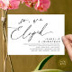 Marque o começo de sua eternidade com elegância usando nosso romântico negro e branco moderno elopemento de casamento alegremente depois do almoço, brunch, a carta de convite para comemoração de festas de janto de recepção, "Então, nós Eloped". Perfeito para os casais estendendo sua alegre ocasião, este convite exude sofisticação com uma sugestão de brincadeira, definindo o palco para um evento memorável. Adorado com um tema design de roteiro moderno de eterno, ele adiciona um toque de encanto refinado às suas festividades. Feito por TeeshaDerrick, este convite promete capturar maravilhosamente sua história de amor.