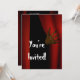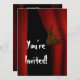 Convite para festa de Halloween para todas as suas ocasiões horríveis!! Convite divertido e elegante com o spunk! Altere o texto para atender às suas necessidades, clique em "Personalizar" para alterar FONT e PLACEMENT do texto. Um lobisomem está abrindo uma cortina vermelha, você só vê a mão/pata, ele convida você para a escuridão do Halloween! A imagem é a arte 3D digital, este design está disponível em vários produtos.