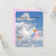 Stork voando nas nuvens entregando uma menina em um cobertor rosa