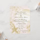 Convite de casamento com design de colagem inspirado em estrelas-do-mar e conchas, em tons de rosa e dourado.