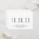 Este moderno, mas elegante, salva o anúncio da data apresenta um simples fundo preto e sua data de casamento em branco. Você pode personalizar esse design ainda mais, alterando a cor do plano de fundo/do backer e/ou adicionando outra foto ou texto adicional ao backer.