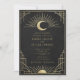 An elegant Art Deco wedding invitation featuring radiant gold celestial motifs — perfect for moonlit ceremonies, solstice celebrations, or timeless evening affairs. Please note: gold is a printed color, not metallic or foil.