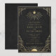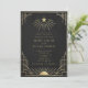 A luxurious black and gold wedding invitation featuring radiant celestial motifs and geometric Art Deco detailing. Personalized with names, date, and venue, this design brings timeless elegance and cosmic symbolism to your celebration. Please note: gold is a printed color, not metallic or foil.