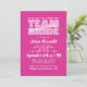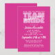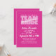 Convite personalizado para festa de despedida de solteira com o tema "TEAM BRIDE" em negrito e rosa claro. Todos os detalhes da festa são apresentados em escrita cursiva branca coordenada. O fundo é rosa vibrante e colorido.