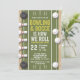 Negrito e vibrante, o Modelo de Convite à Boliche de e Ocupação apresenta um tema esportivo com um esquema de cores verde e bege impressionante, complementado por grandes elementos impactantes. O design inclui ilustrações limpas de faixas de boliche e elementos de bloqueio, em conjunto com tipografia branca nítida. Perfeito para eventos de formação de equipes, reuniões corporativas e noites de diversão ocasionais, este modelo é totalmente personalizável e projetado para se destacar. Ele traz uma vibração dinâmica e enérgica a qualquer boliche e ocasião temática de chocos.
