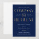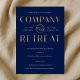 Crie convites de fim de semana modernos para team-building de negócios com este design de convite de retiro da empresa em azul marinho e dourado. Com efeitos de folha de ouro falso, layout minimalista e seu logotipo personalizado, este folheto de marketing de retiro de negócios permite que você edite as cores do fundo e os detalhes do evento para que você possa adaptá-lo ao seu evento.