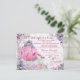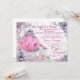 Convite de chá de bebê Era Uma Vez com belo carrinho de princesa rosa em um deslumbrante fundo floral rosa e roxo com brilho. Este convite de chá de bebê de princesa de conto de fadas elegante e sofisticado é facilmente personalizado para o seu evento, basta adicionar seus detalhes no estilo de letra, cor e texto de sua escolha. Este é um design impresso sem fitas, joias, glitter, etc. reais.