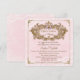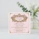 Convite de festa de aniversário Era uma vez com bela coroa dourada cintilante ornamentada com laço rosa bonito em um fundo de renda dourado e rosa pálido. Você pode personalizar facilmente este convite de festa de aniversário princesa de contos de fadas rosa e dourado para o seu evento, simplesmente adicionando seus detalhes no estilo de letra e cor, e texto que preferir. Todos os desenhos são gráficos impressos sem jóias reais, laços, brilho, etc.