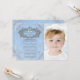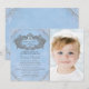 Convite de aniversário da princesa do conto de fadas com brilho azul e prata com moldura de coroa com brilho prateado elegante em um lindo fundo azul e prata da Cinderela. Você pode personalizar facilmente este convite de aniversário da princesa do conto de fadas azul e prata para o seu evento, simplesmente adicionando sua foto e detalhes do evento no estilo de fonte e cor, e texto que preferir. Todos os desenhos são gráficos impressos sem pedras preciosas, laços, brilho, etc. reais.