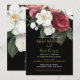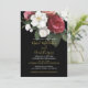 Um buquê floral com um rosa burgundy é a base para este elegante convite personalizado de casamento. Chic elegante sobre fundo preto. Altere facilmente as informações para o seu convite personalizado de casamento.