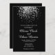 Este simples e moderno design apresenta um esplash de um confete de brilho prateado sobre um fundo preto da meia-noite. Uma escolha excelente para o seu casamento clássico de metrô. Você pode alterar o estilo da fonte, a cor e o posicionamento juntamente com o seu próprio texto clicando no link personalizar.