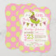 Impressão de pontos verdes negros e banner de bunting com uma menina africana na placa de convite do chá de fraldas moderno da vagem de ervilhas design.