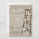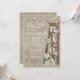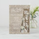Escadas de madeira vindimadas com rosas brancas antigas e a palavra "bebê" solta-se em letras de madeira. A madeira de cinza macia e termal parece design com um toque de estrelas cintilantes espumantes ao redor. Bonito convite de chá de fraldas bóho rústico, neutro em relação ao sexo para o bebê ou menina.