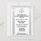 Comemore o formando da escola de direito com este distinto anúncio que caracteriza as escalas de justiça e do quadro grego da coluna no fundo branco.