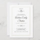 Um convite à festa de formatura de quadros triplos e falsa para um formando de direito que é simples, mas sofisticado, eterno e elegante. Observe que o relevo nos quadros é criado por meio de uma imagem e nenhum relevo real aparecerá na placa. No topo, uma ilustração estilizada do vetor das escalas da justiça mostra o ano da graduação. Personalize cada linha de texto. Preto e Branco.