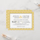 Convite de casamento moderno e chico com padrão amarelo e em escala de cinzas. Cartões de resposta, cartas de agradecimento, favores de casamento, etc... © Mood 4 Cute