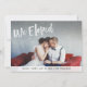 Este anúncio do elopemento de casamento moderno e moderno apresenta uma tipografia tradicional escrita à mão sobre a sua foto de casamento pessoal, e uma cinza de cor aquática parece estar a olhar para trás.