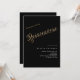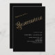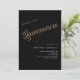 Um convite moderno minimalista da Quinceañera. O fundo preto clássico e a palavra Quinceanera escrita com letras grandes em ouro falso. Personalize e adicione um nome e detalhes da parte.