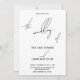 O título muito grande lê "o casamento de" em uma escrita manual fina, moderna e casual. A mesma fonte foi usada para "e". Todo o outro texto foi renderizado em uma fonte serif em maiúsculas. Tudo sobre o design é editável; use os campos modelo para adicionar seus detalhes pessoais. Se você quiser modificar ainda mais os elementos principais do design - cores, fontes, layout - clique no link "editar design". Estão também disponíveis peças de coordenação.