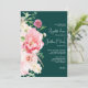 Este elegante e escuro esmeraldo verde esmeralda e pincelado cor-de-rosa floral escuro convite de casamento apresenta flores cor-de-rosa pinceladas, verde, belas caligrafias escritas com na moda num rico e moody emerald background. Este convite é perfeito para o casal ter seu casamento em um romântico, formal, elegante, moderno, chique, sofisticado, moda, casamento de jardim ou local de casamento ao ar livre.