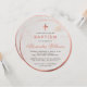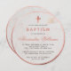 Um design simples, mas moderno e elegante que usa as tendências atuais: mármore e metal (ouro rosa). Há uma armação de ouro rosa redonda em ambos os lados e uma cruz de ouro rosa acima do texto - ambas folhas de ouro rosa. A ocasião "Batismo" e o nome são cor-de-rosa, o nome é escrito em escrita caligráfica. O fundo de ambos os lados é mármore branco. Recomendado para o batismo de uma menina.
