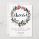 Celebrar o Natal, a véspera do novo ano e a época de férias do inverno com esta moderna coroa vermelha, azul e verde de aquarelas com amoras vermelhas e Cheers em um legal roteiro moderno de fontes.