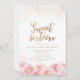 Escrito moderno "16 doces", brilho fino dourado e design floral cor-de-água rosa pincelada, elegante e na moda, excelente doce 16 convites de aniversário.