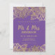 Uma caligrafia manuscrita em ouro ousada, a tipografia moderna do MR. MRS, com convites de casamento clássicos de giz roxo e dourado de mandala floral. Esta elegante e elegante floral de mandala é perfeita para a moda e o casal na moda. Personalize este design com sua mensagem e informações personalizadas. Todas as designs são impressas.
