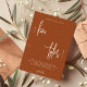 A lendária trendy escreveu convite para casamento num simples monocromático pôr do sol laranja de ferrugem e branco com os nomes de noiva e noivo. ++++++++++++++++++++++ Você pode alterar as cores do texto e do plano de fundo após selecionar a opção PERSONALIZAR mais. ++++++++ O convite é adequado para cerimônias e recepções de casamento informais de estilo moderno.