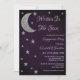 Escrito na festa de noivado das estrelas. Lua prateada e estrelas contra fundo púrpura da noite escura