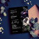 Gótico elegante do mano escuro tudo em um convite para modelo de casamento instantâneo de download digital instantâneo, pessoas roxas negras em convite para casamento de fundo escuro com detalhes de casamento e código QR RSVP no fundo