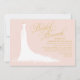 O convite de brunch de noiva elegante para a noiva-a-na moda apresenta uma letra de script de caligrafia de ornamentado e um vestido de noiva fluente. O escroto floresce, flores e borboletas detalham o vestido etéreo. Cor branca, cor-de-rosa pálido e design dourada.