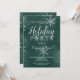 Um moderno e esmeraldo verde com neve e flocos de neve, empresas de férias jantam convite de festas de Natal