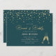 Chá Bridal Brunch & Bubble com bolhas de folha de ouro falsas e flautas de champanhe em um fundo verde esmeralda. Estes convites elegantes são perfeitos para um brunch de chá de panela clássico. Personalize com suas informações para que a noiva seja.