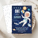 Cute Blue Space First Trip Around Sun Invitation O espaço exterior do garoto Cute recebeu o primeiro convite de aniversário com espaçonave, planetas, sol e astronauta com foto no capacete espacial. Esta primeira viagem ao redor do convite de aniversário do sol é uma maneira fofa de convidar convidados para uma primeira festa de aniversário do espaço sideral.